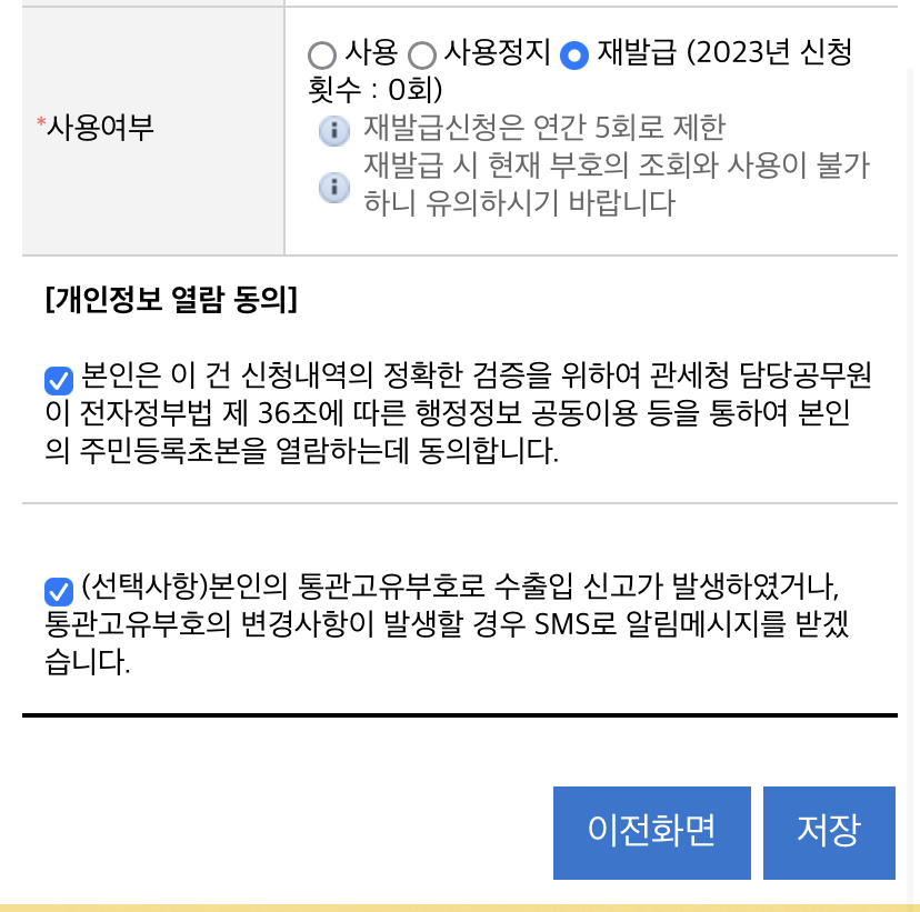 개인통관번호 바꾸는 방법