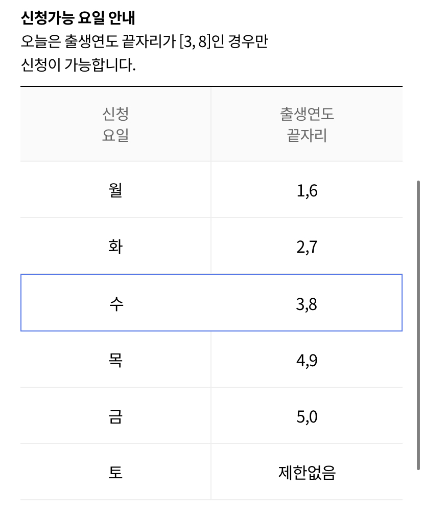 • 출생연도 끝자리에 대하여 5부제 운영 (2.27~3.3)