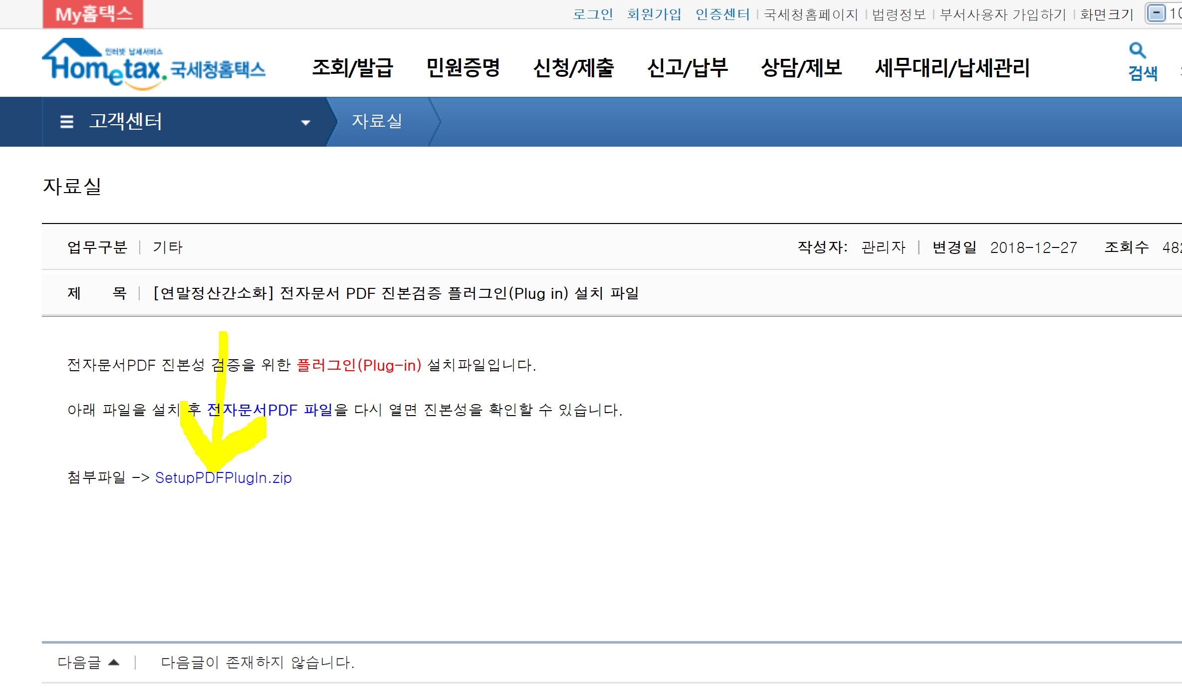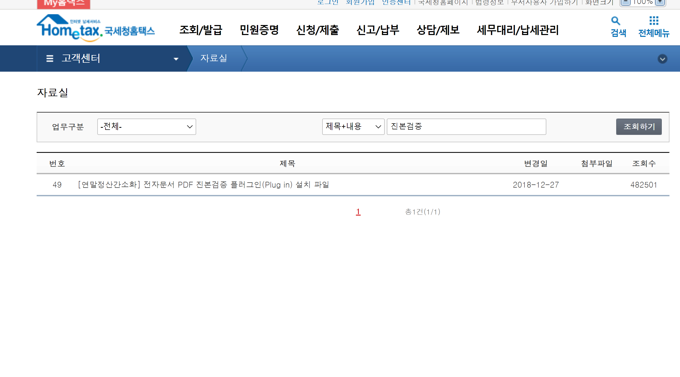 연말정산 간소화 - 진본 검증 플러그인 설치파일이
