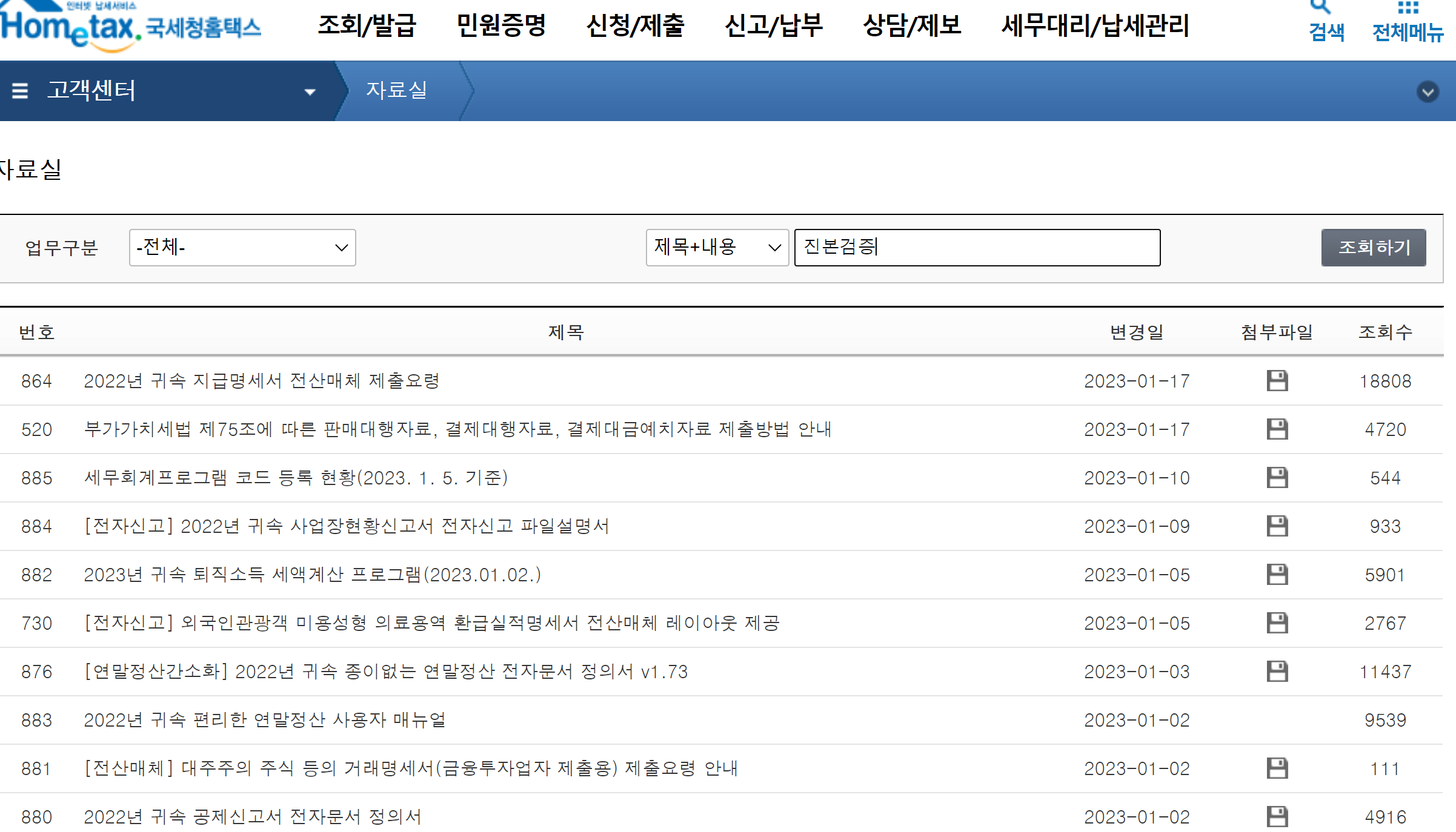 3. 자료실에서 검색 _ 검색어 : 진본검증