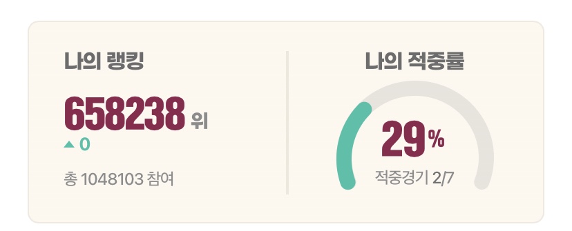 저는 적중률 29프로 ㅋㅋ