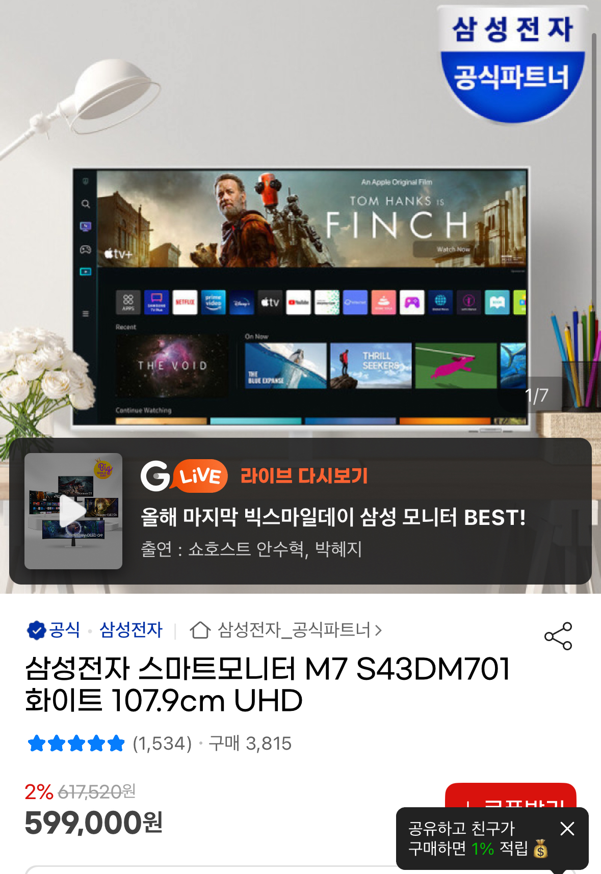 다들 구매하는 구매하고 싶은 삼탠바이미 저도 드디어 구매했습니다 _ M7 S43DM701