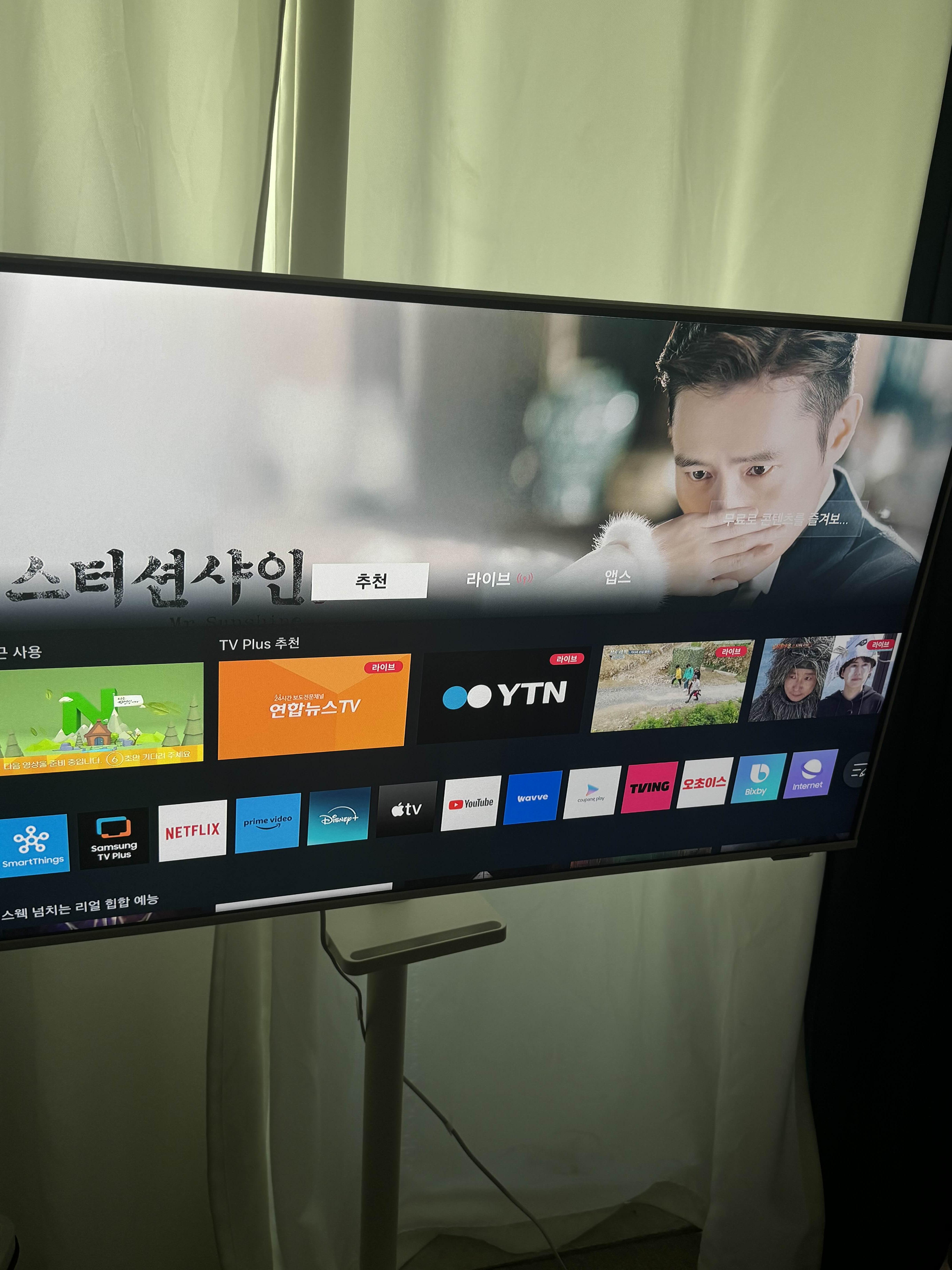 짠 이렇게 조립을 완료했습니다. 기본적인 삼성 채널에 상당히 많은 채널을 보유하고 있어서, 시골에 계신 부모님께 선물하는 것도 괜찮아보였습니다.(와이파이 되어야함) 전 OTT가입을 여러개 해놔서 오자마자 모든 계정을 연결해서 사용중입니다.