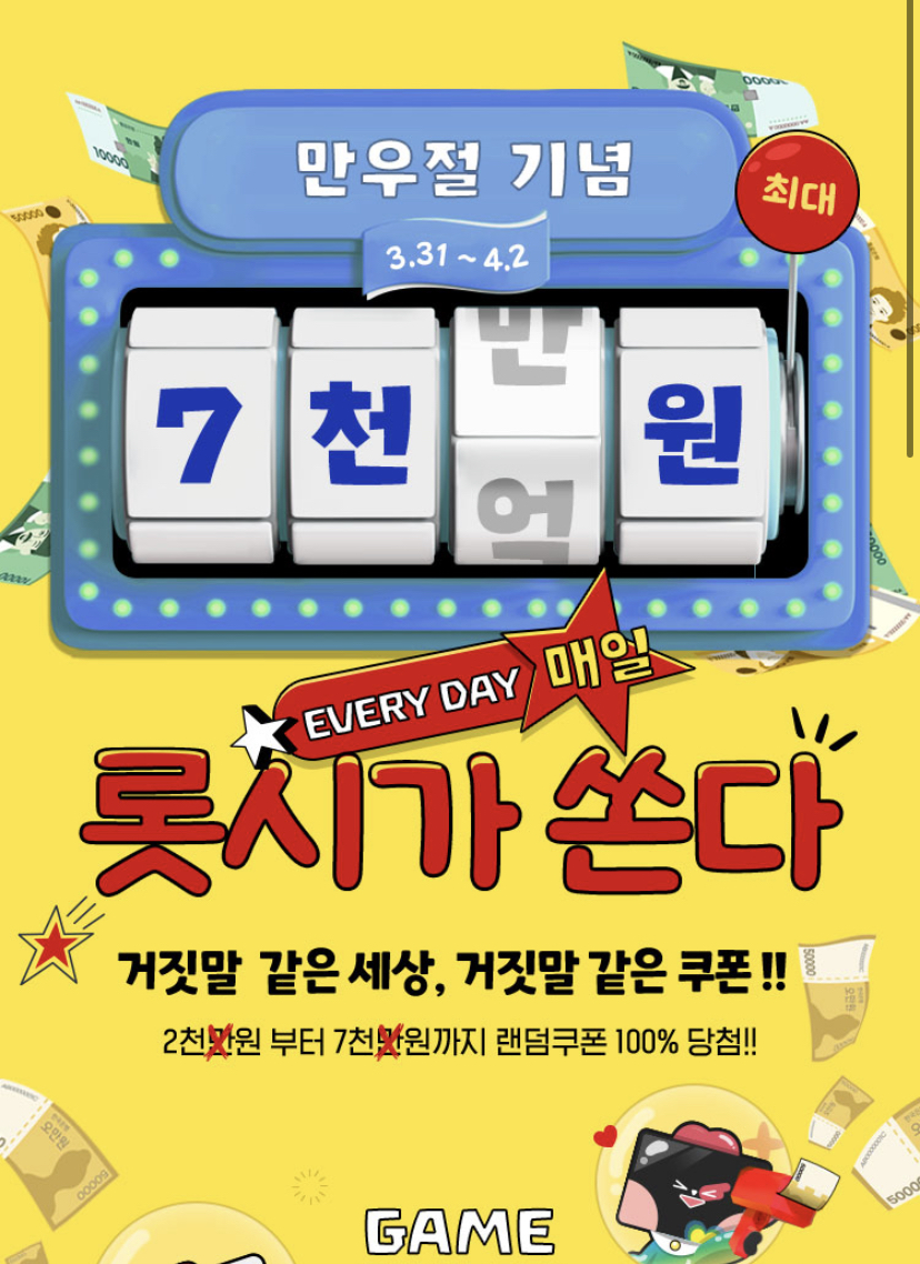 롯데시네마는 홈페이지에서 2천 원부터 7천 원까지 쿠폰을 랜덤으로 지급한다고 합니다. 이벤트 참여하실 분을 위해 이미지에 배너 걸어두었으니 참고해 주세요.
