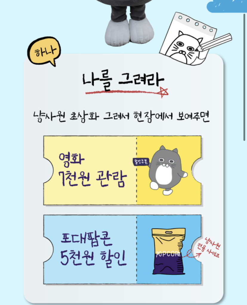 영화 7천 원 관람권과 포대 팝콘 5천 원 할인권을 준다고 하네요.
