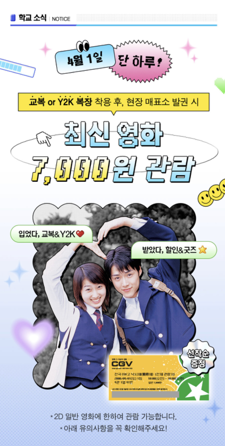 CGV에서는 교복과 Y2K 의상을 입고 방문하면