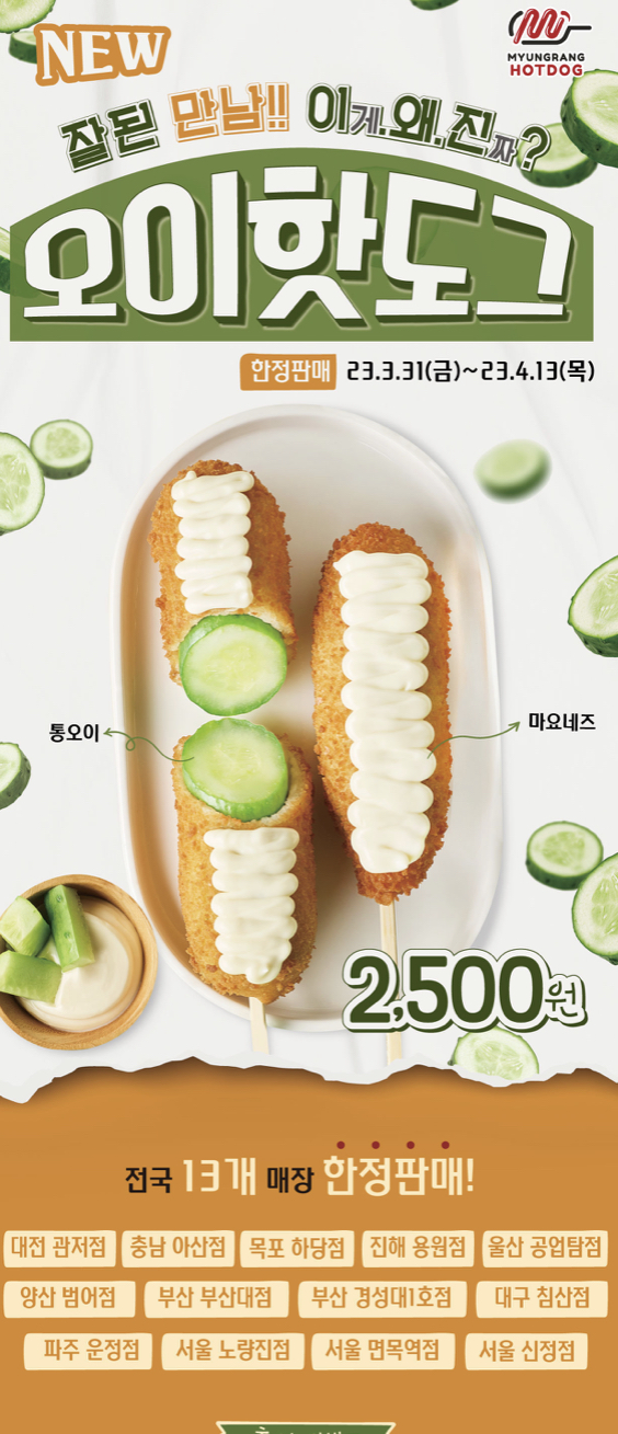 전국 13개 지점에서만 한정 판매하는 오이핫도그