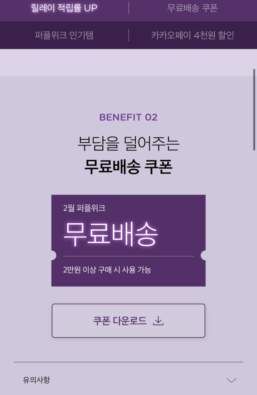 자세한 내용은 https://www.kurly.com/m2/event/kurlyEvent.php?htmid=event/2023/0220/purpleweek