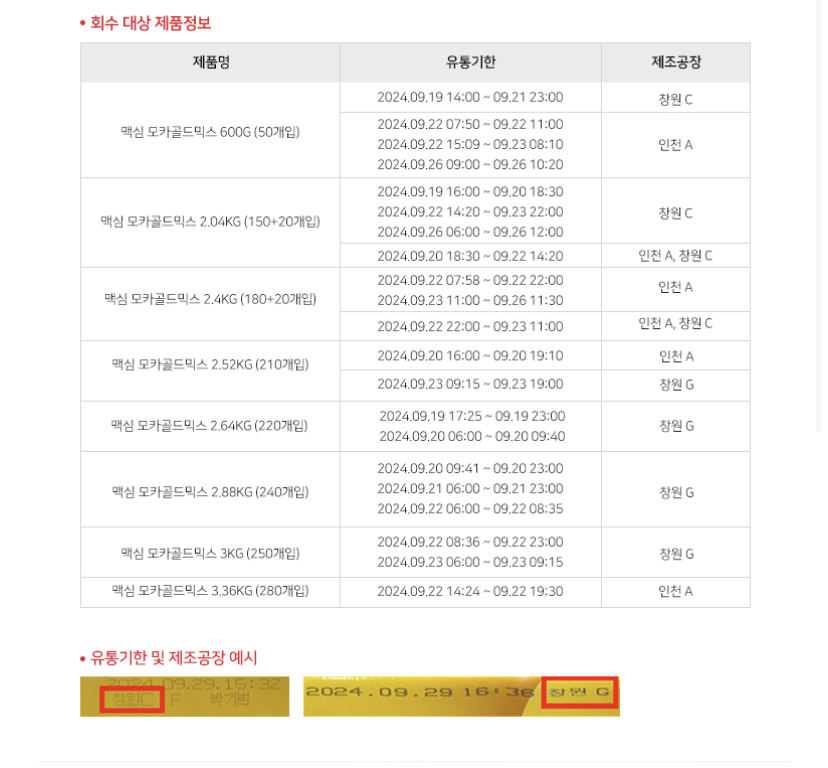 9월에 만든 제품들이 회수대상이고 저같은 경우엔