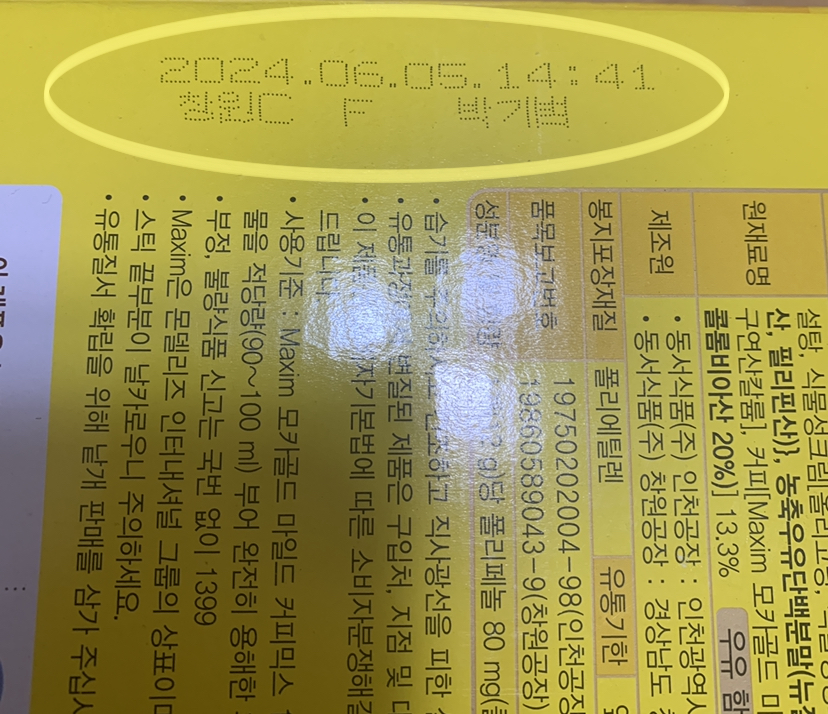 박스가 없으시면, 낱개 봉지에 저런식으로 하나씩 표기가 되어있으니 확인해보세요.