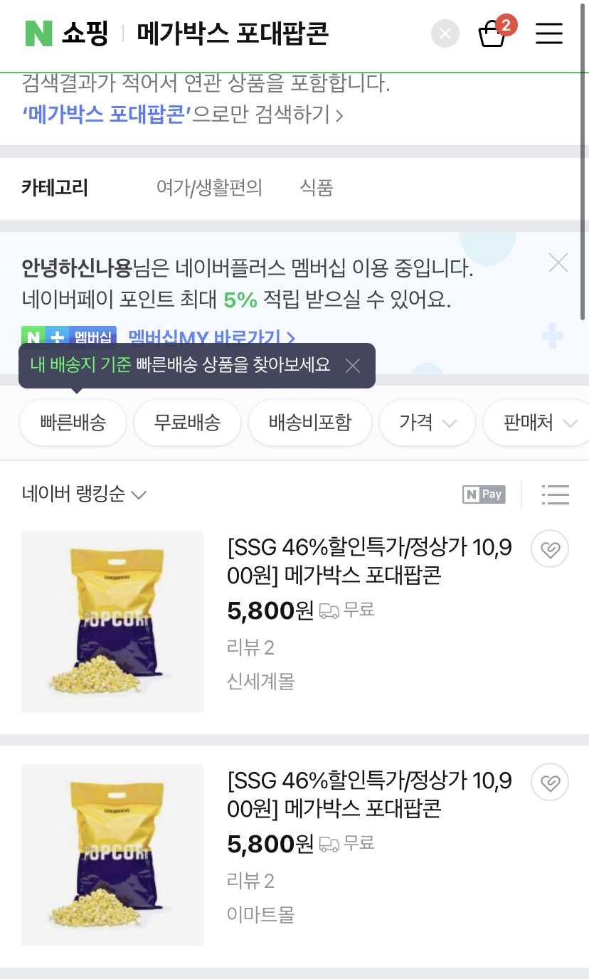 그럼 팝콘 5,800원에 팔고 있습니다.