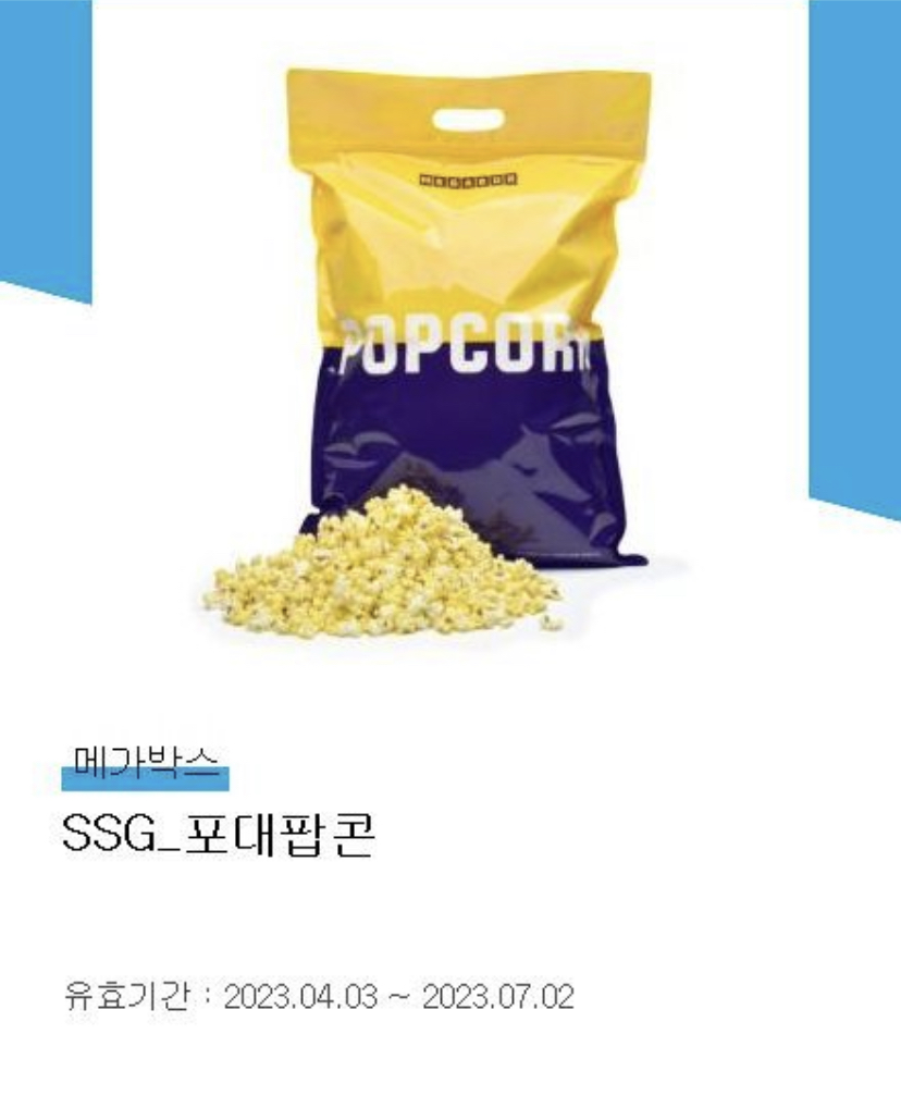 메가 박스에서 포대팝콘을 팔기 시작했습다.