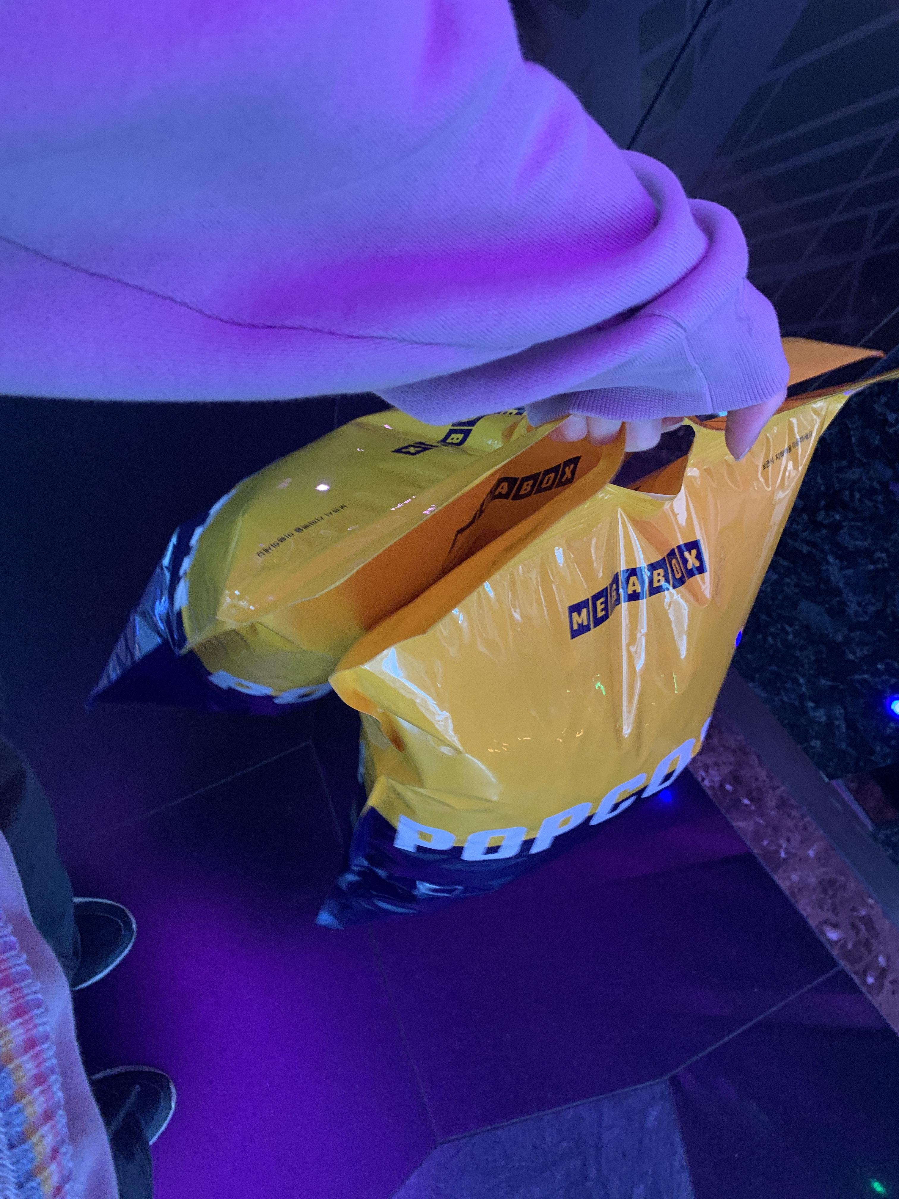메가 박스에서 포대팝콘을 팔기 시작했습다.