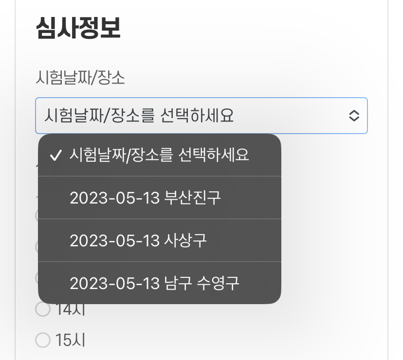 ※ 심사장소와 시간은 신청 시 선택하실 수 있습니다.