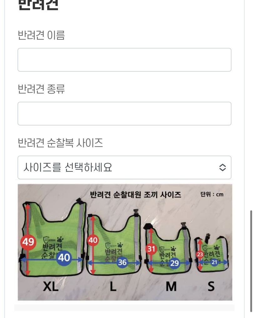정보들을 입력해서 신청하시면 되고, 선발 시 귀여운 반려견 순찰대원 조끼도 제공된다고 하네요.