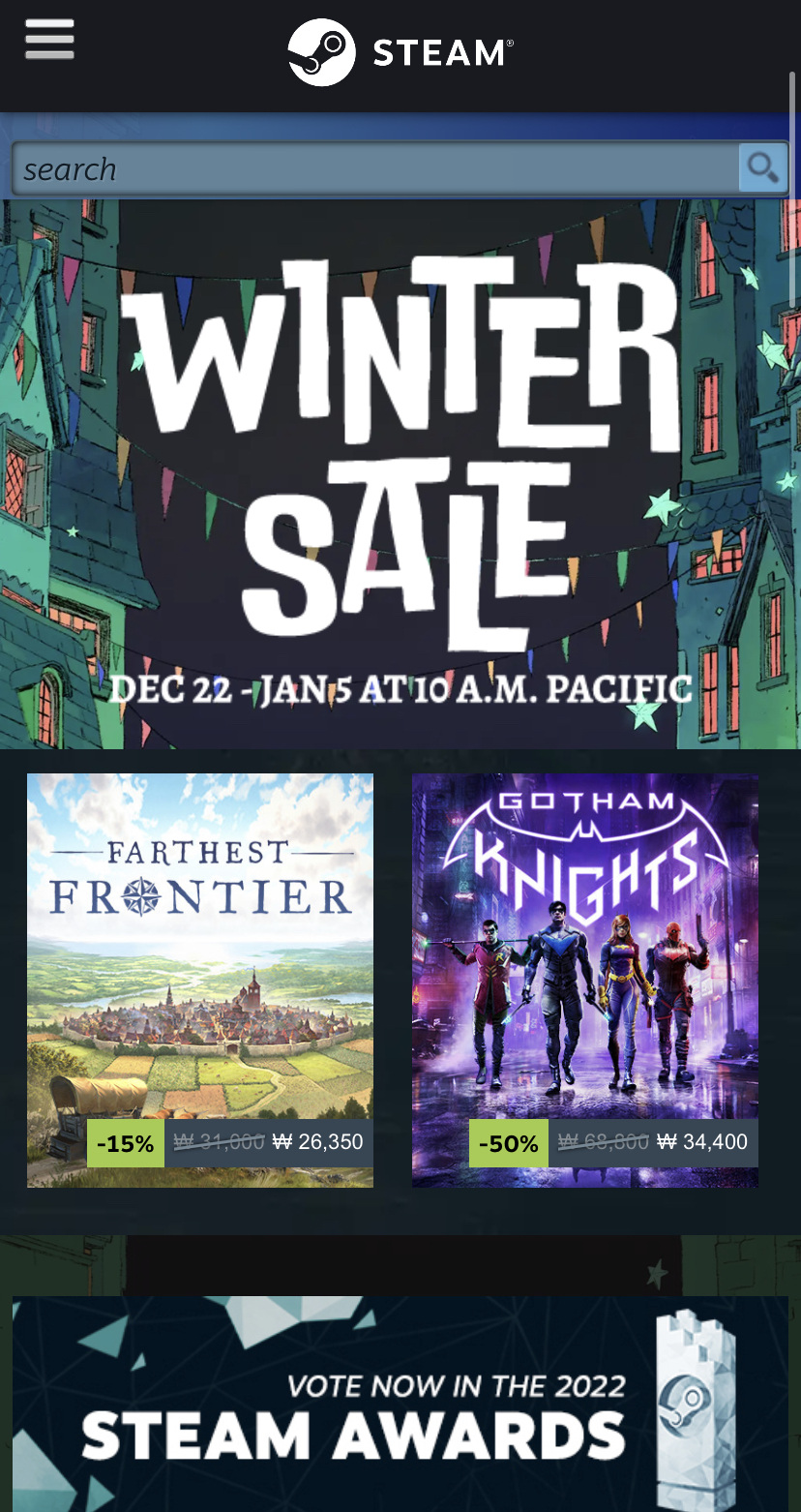스팀 겨울 할인이 시작되었습니다.