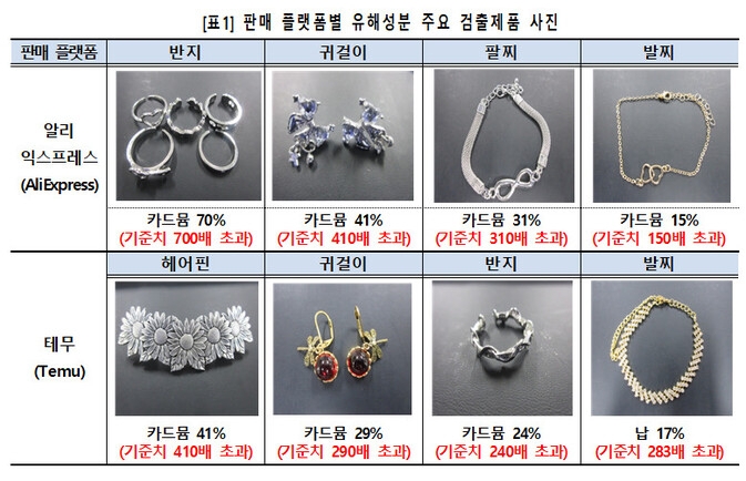 알리와 테무에서 검출된 유해성분 장신구와 정보