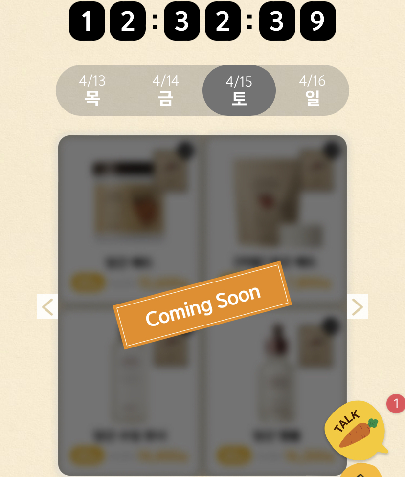 우선 매일 더 많은 할인을 해주는 상품이 있습니다. 오늘인 4월 13일의 경우엔 미나리와 관련된 상품들이 40프로 할인이 되는데요. 내일은 모자이크 된 사진으로 추측했을 때 도토리 패드, 4월 15일 토요일에 많은 분들이 사용하시는 당근 패드가 추가 할인이 될 것으로 예상되네요.