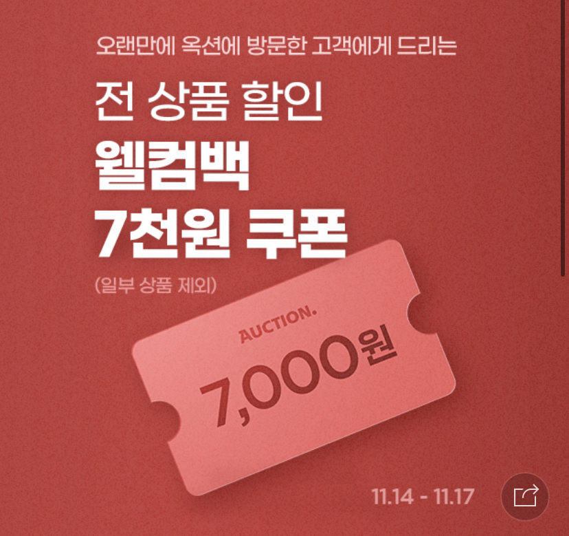 옥션 할인쿠폰 웰컴백_7000원 할인⁉️ (~11.17)