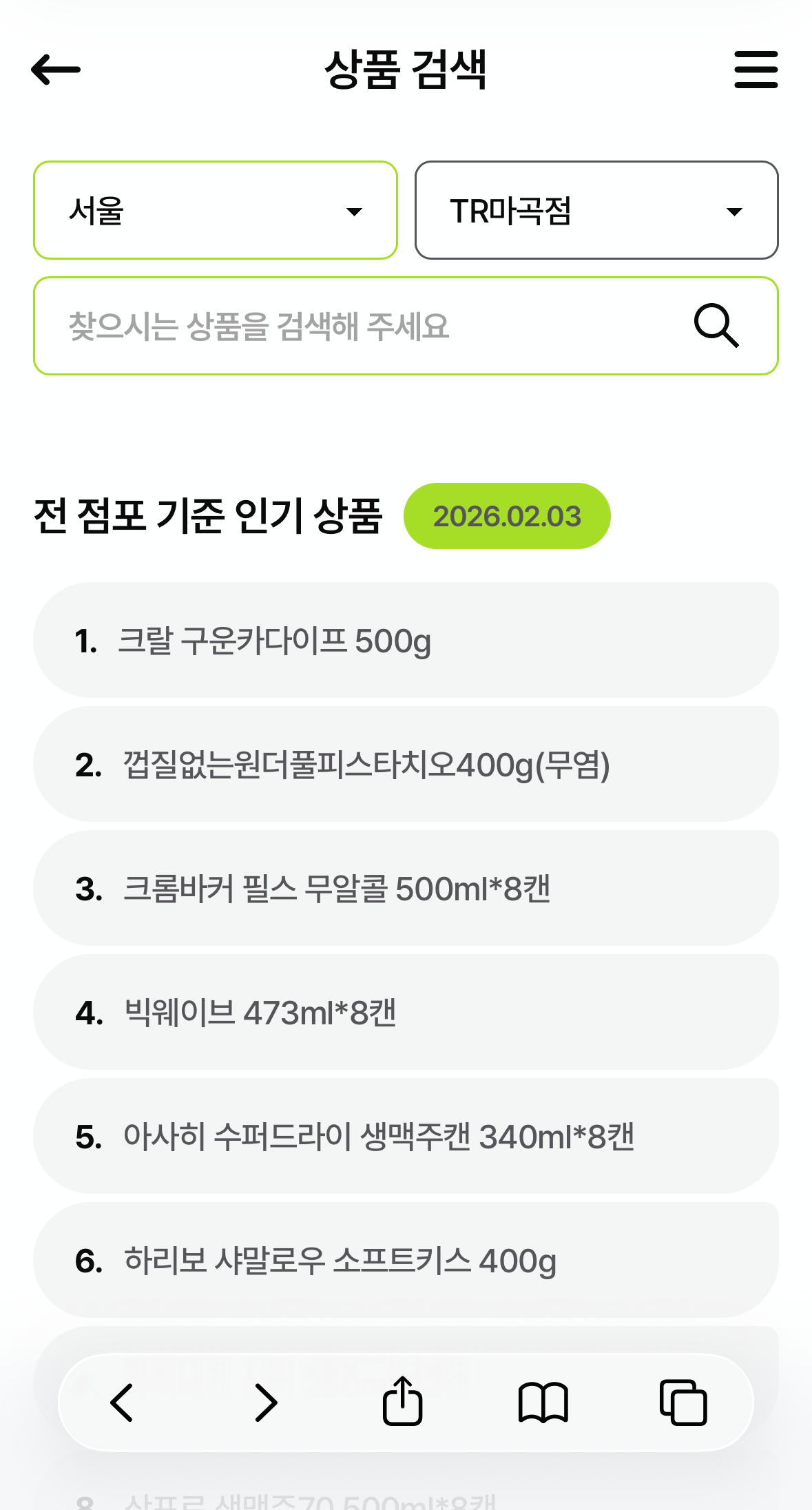 상품을 검색할 수 있고 그 상품이 재고가 있는지 여부가 확인 가능합니다.