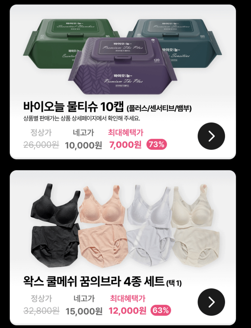 9. 바이오늘 플러스 10개 10,000원 / 센서티브 10개 11,500원 / 뱀부 10개 15,000원 (1인당 5개 구매 제한)