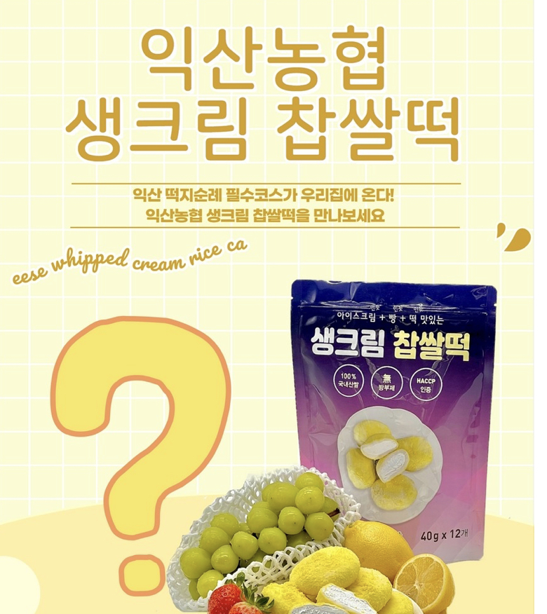 1. 익산농협 생크림 찹쌀떡 1봉(12알) + 원하는 맛 선택