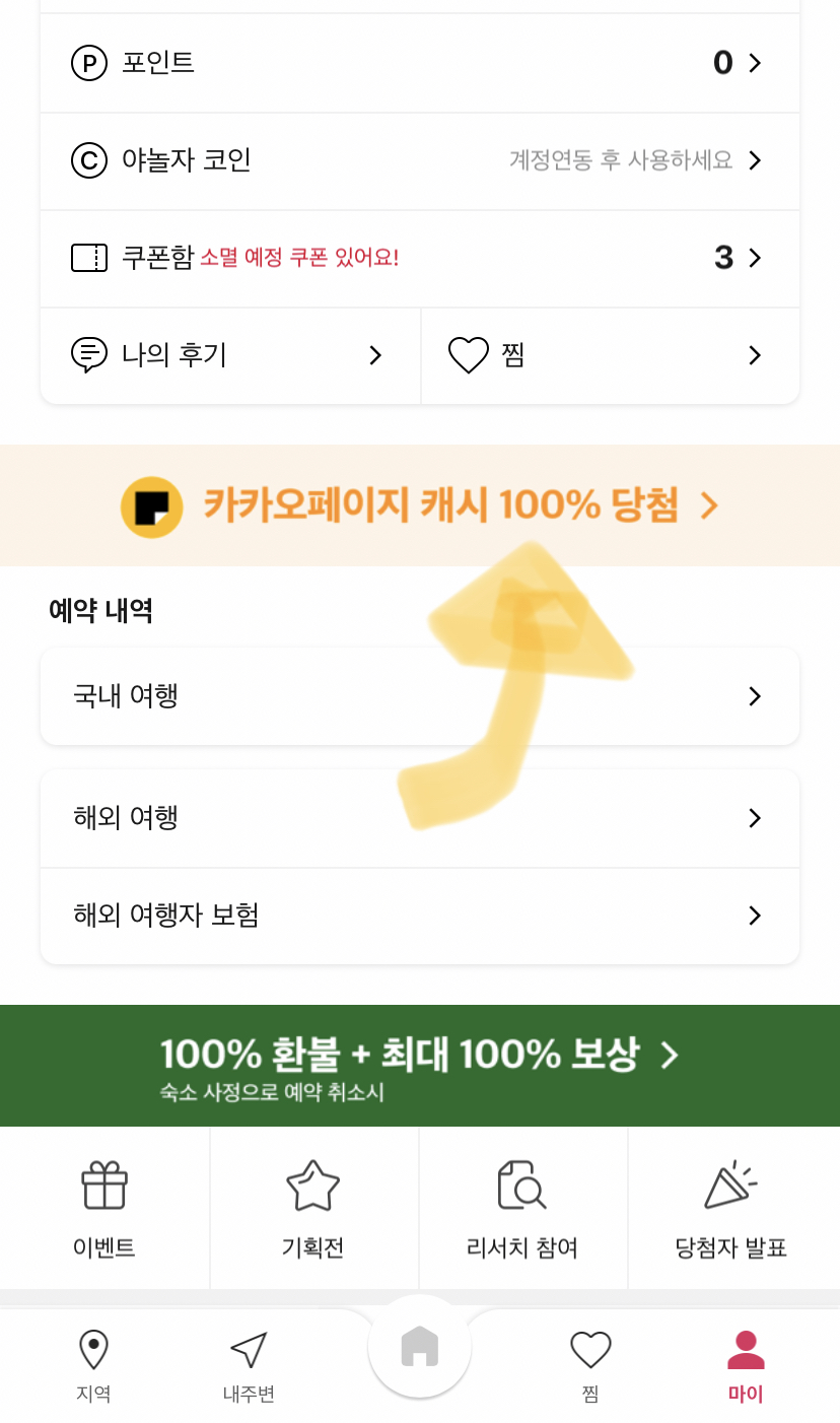 카카오 페이지가 야놀자와 콜라보 이벤트를 진행합니다.