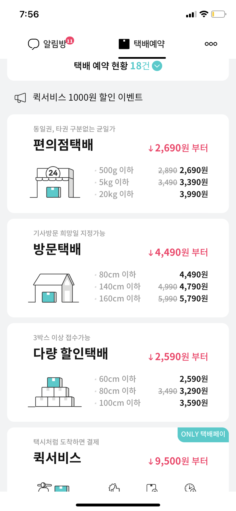 (택배예약 내역만 봐도 18번 이용한ㅋ