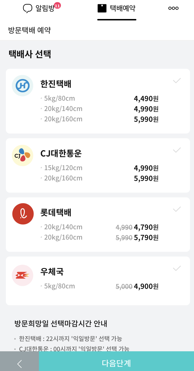 우선 방문택배 기준으로