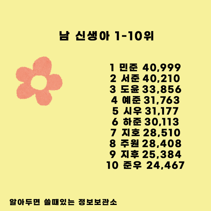 한번 지으면 한평생을 같이하게되는 이름, 물론 개명할 수도 있지만 한번 지을때 좋은 이름을 지어준다면 베스트겠죠? 아이 이름을 무엇으로 지으면 좋을지 많이들 고민하시고 계실텐데 오늘은 한국에서 가장 인기 많은 이름에대해 알아보겠습니다.