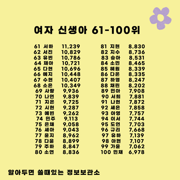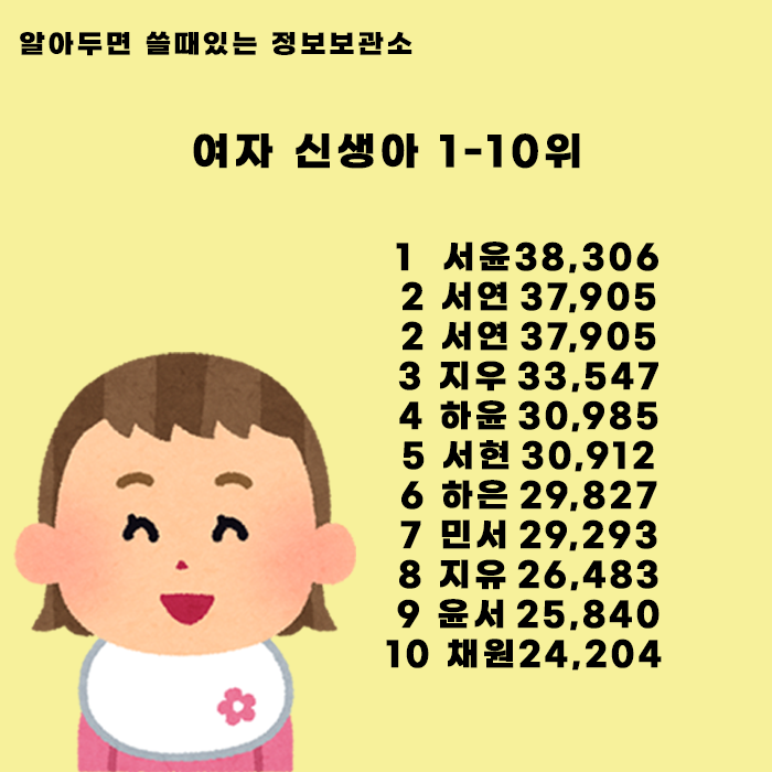 여자 신생아 아이 이름 순위