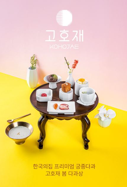 고호재는 '옛 것을 좋아하는 이들의 집'이란 뜻으로 한국의집 프리미엄 궁중다과 브랜드입니다. 1인 소반에 정성스럽게 차려낸 전통차와 제철 재료로 빚은 떡, 한과 등의 다과상을 궁중무용 춘앵전과 함께 즐길 수 있도록 제공합니다. 경복궁 생과방같은 경우엔 실제 궁에서 차를 먹는 매력이 있지만, 고호재의 경우엔 궁중무용을 관람하며 차를 마실 수 있다는 매력이 있습니다.