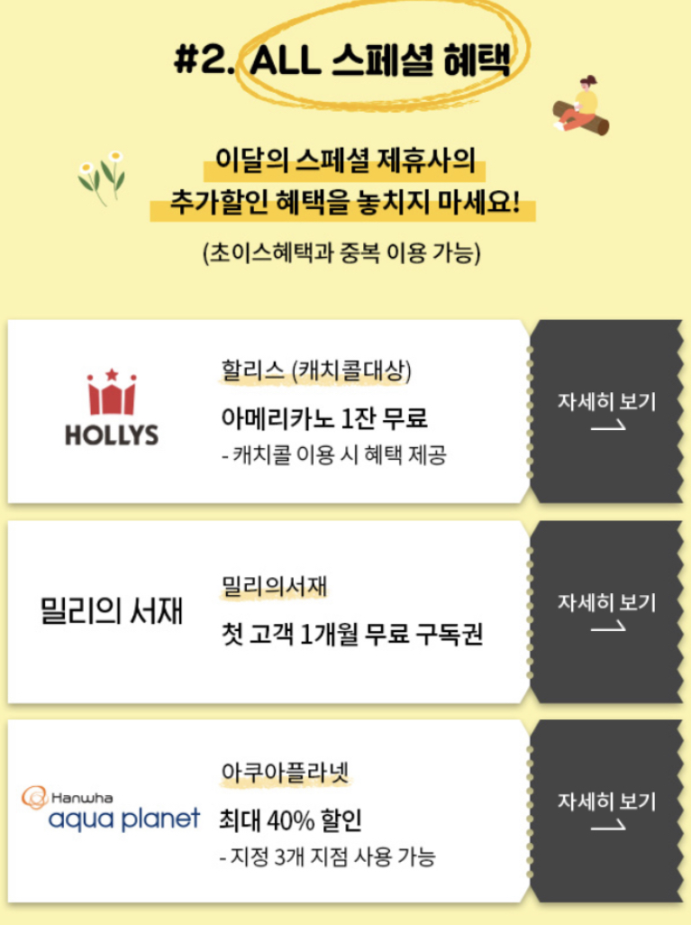 아쿠아 플라넷 할인등의 추가 혜택도 있군요.