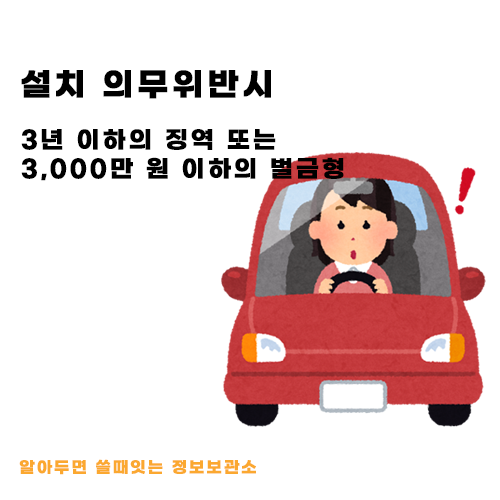 2024년 12월부터 본격적으로 시행하게 된다면 자동차 소화기 설치 의무 위반시 3년이하의 징역 또는 3,000만원 이하의 벌금형에 처해집니다. 따라서 5인용 이상의 차량엔 자동차 소화기 설치가 필수가 되는 것이죠. 생각보다 징역과 벌금의 강도가 높죠? 아무래도 인명사고와 관련된 일이라 더 그런것이 아닐까 생각됩니다.