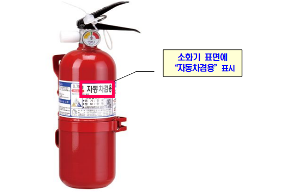 이런식으로 소화기에 자동차 겸용이라고 적혀있는 소화기또는 자동차 전용 소화기를 준비하여야 합니다.
