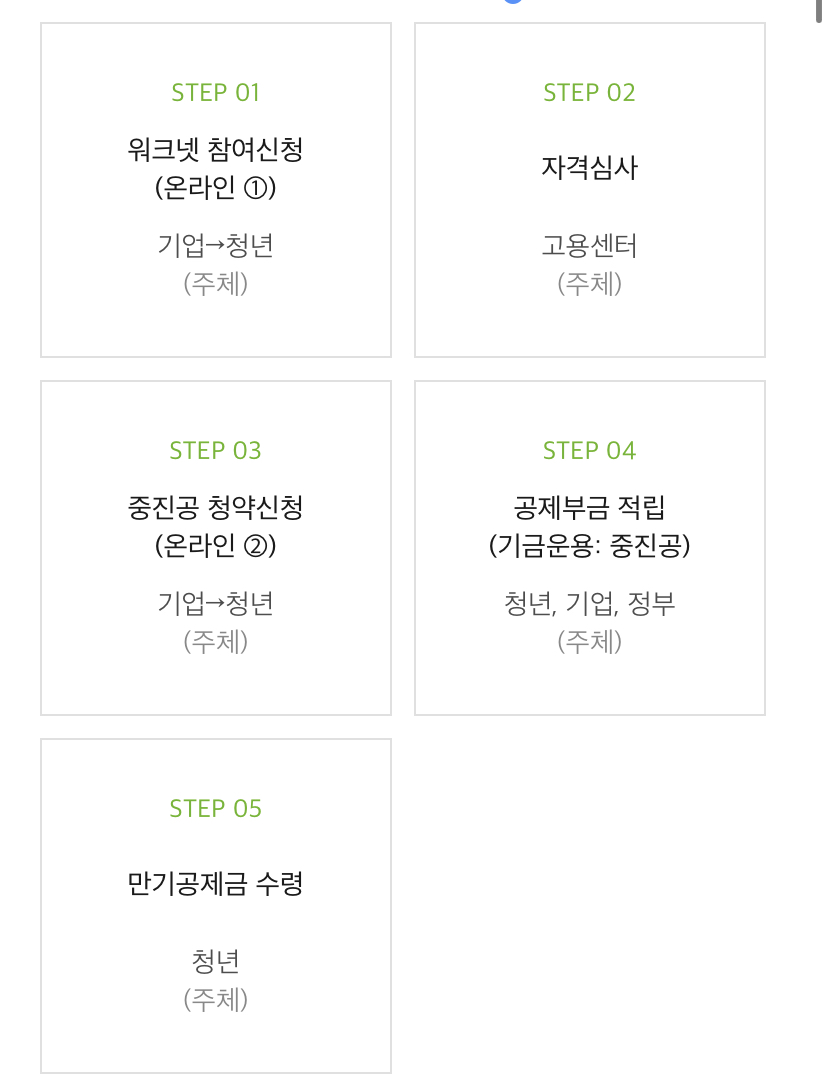 작년에 비해 업종과 규모가 확연하게 줄어들었습니다. 2023 청년내일 채움공제와 같은 경우엔 제조와 건설업종에 한정되었으며 2년간 400만 원을 적립하면 정부와 기업이 400만 원을 적립하는 식으로 바뀌었습니다.